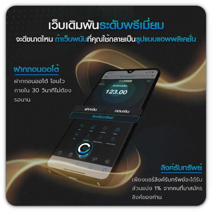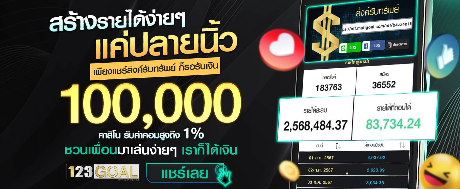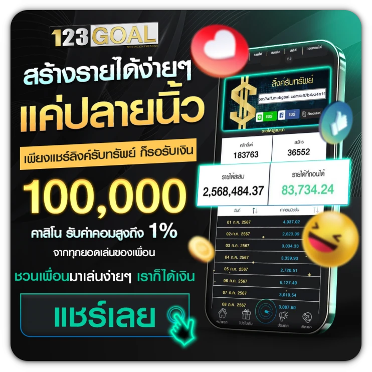 ระบบสร้างร้ายได้ จากยอดเล่นของเพื่อนไม่ว่าได้หรือเสีย โดยนำ ลิงค์ รับทรัพย์จากการสมัคร GOAL 123 ไปแนะนำเพื่อนต่อบนแอพพลิเคชันต่างๆรับค่าคอมมิชชัน 1 บาท